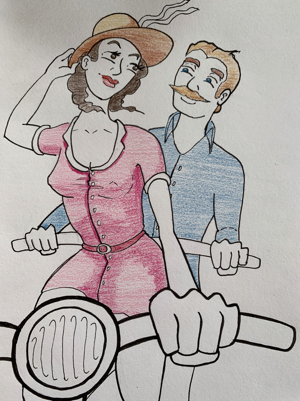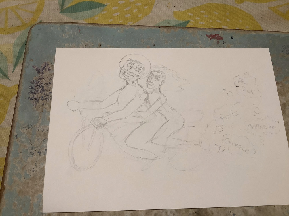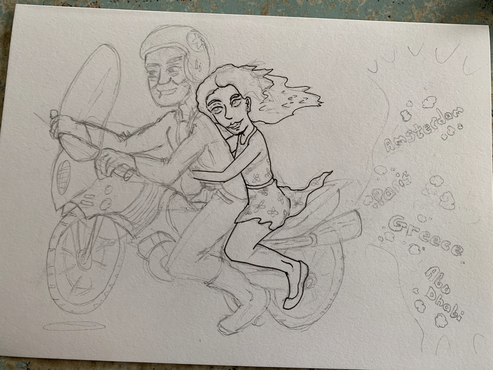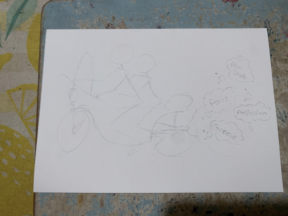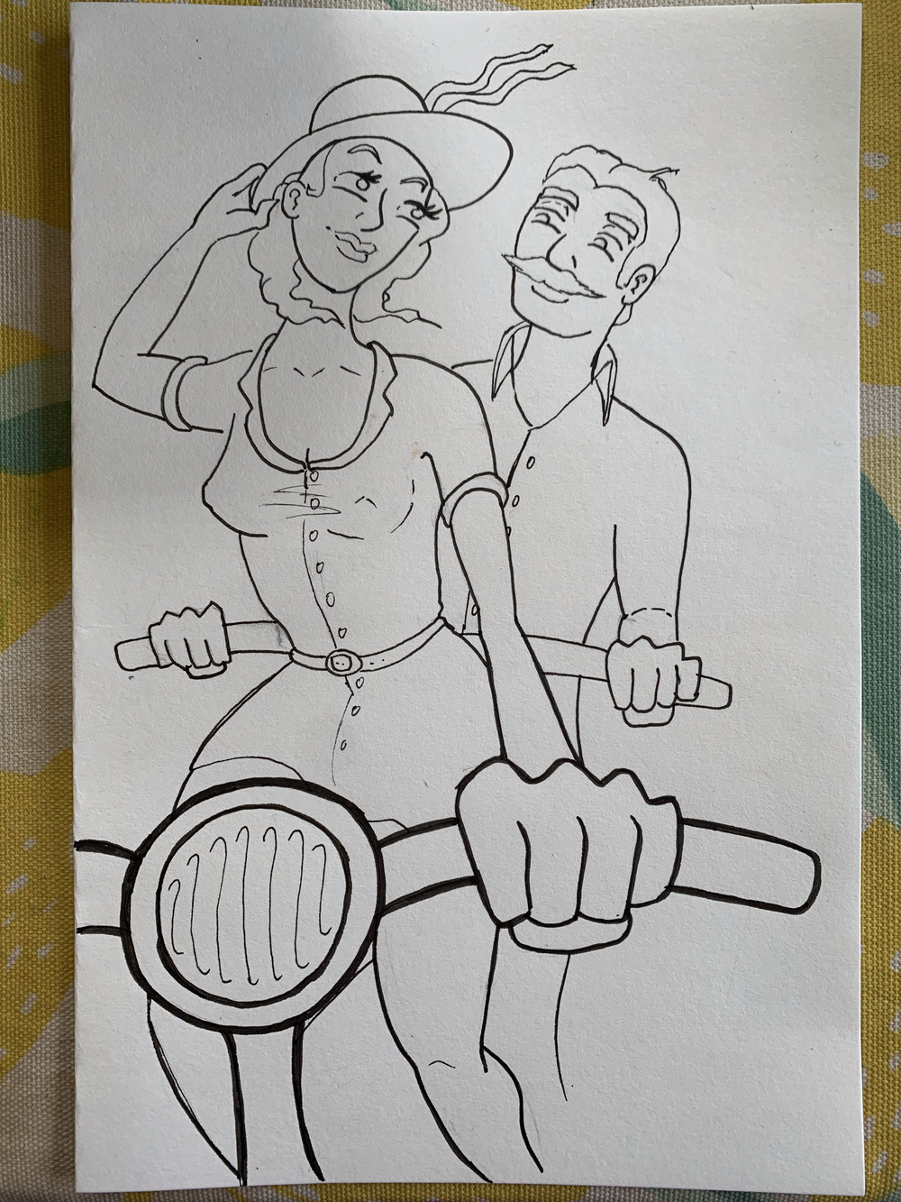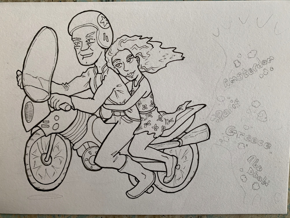 This card was produced for George to celebrate the one year annivesary between him and his fiancée. George asked the card to personalized to show him and his fiancée riding George’s motorcycle with names of the places they had been formed in the exhaust smoke.
