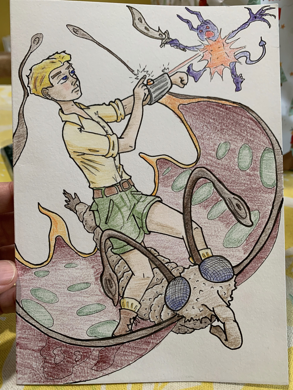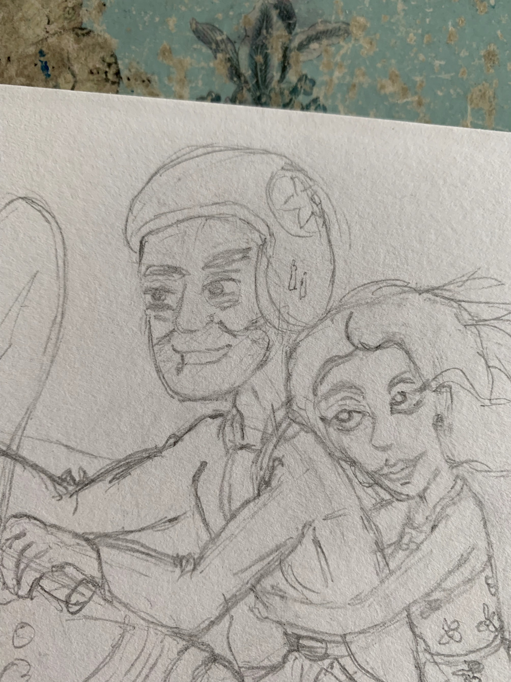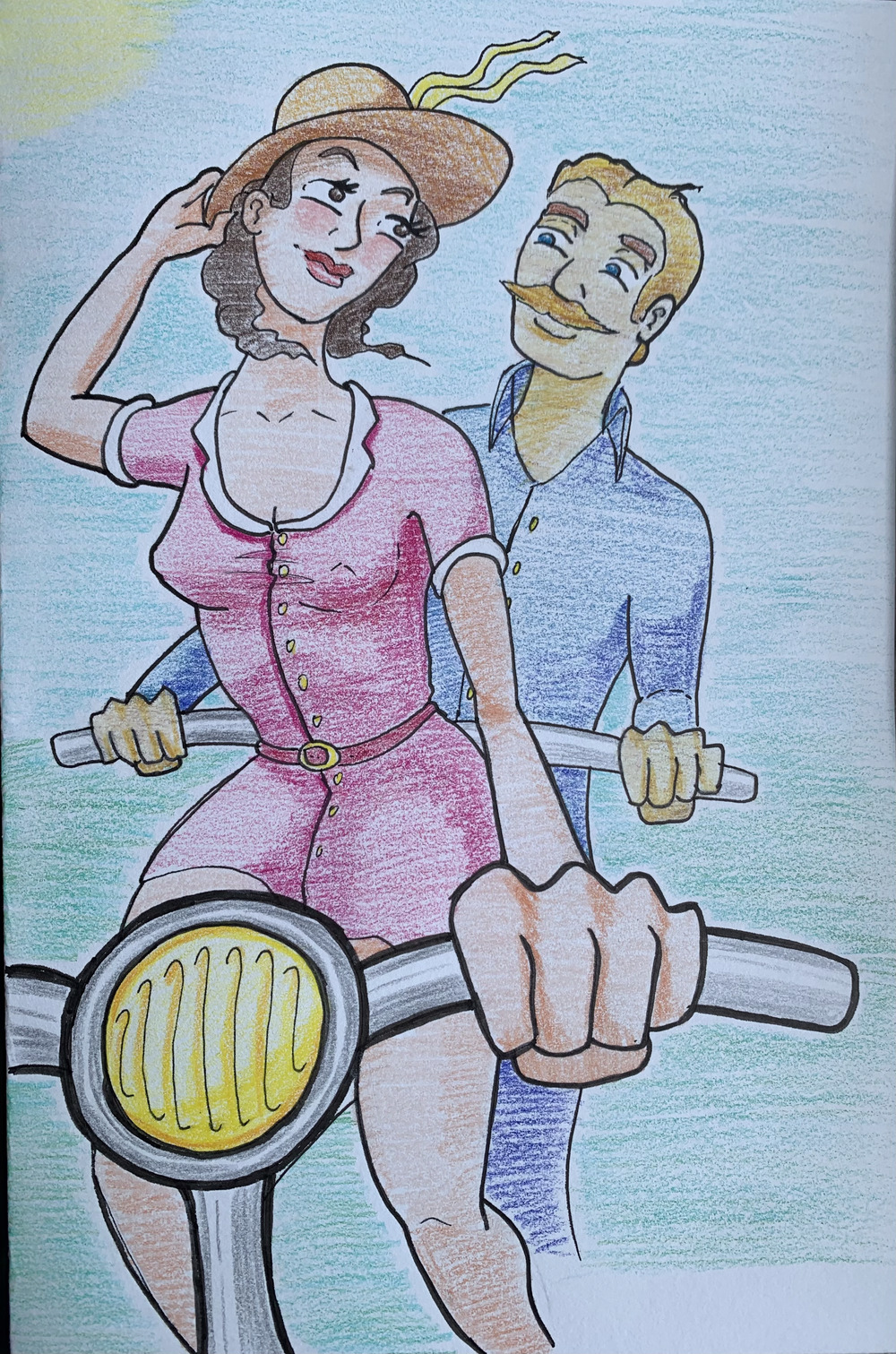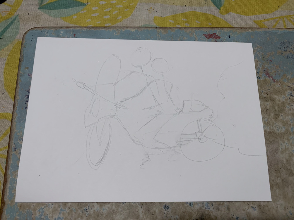 This card was produced for George to celebrate the one year annivesary between him and his fiancée. George asked the card to personalized to show him and his fiancée riding George’s motorcycle with names of the places they had been formed in the exhaust smoke.